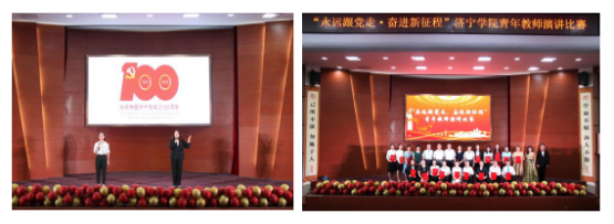 学党史颂党恩,师生齐心礼献百年华诞。为庆祝建党一百周年,深入推进党史学习教育,6月16日,由党委宣传部(教师工作部)和校工会主办,人文与传播学院承办的“永远跟党走·奋进新征程”庆祝建党一百周年青年教师演讲比赛在理科楼报告厅成功举行。此外,指导在校学生积极参与“老兵永远跟党走 党旗飘扬在心中”、“学习国旗知识,争当爱国青年”等知识竞赛,以赛促学、以赛促宣,用青春之力抒发爱党爱国之情。