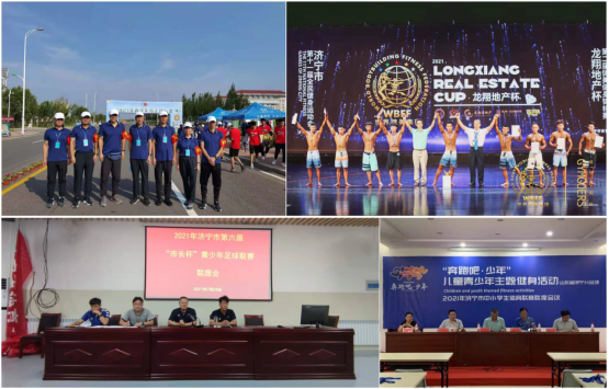 服务地方体育活动。体育学院积极对外发展,充分发挥学校体育人才服务地方的作用,在国家级、省市各项赛事组织、裁判和培训工作中充分发挥专项优势,切实在推动社会体育事业发展中发挥了引领作用,与地方合作开展的体育社会工作成效显著,受到社会各界的一致好评。体育学院教师徐刚、马福平、谈晓矛、冷永强、郭斌、杨大志、宋正义、杨皖霖、何茂贵、马东顺分别在中国田径协会2021年全国青少年竞走锦标赛、济宁市第十一届全民健身运动会等一系列比赛中担任裁判长、技术代表、教练员等,为体育赛事做出了突出贡献。