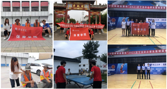 服务基层:广泛开展暑期“三下乡”社会实践活动。体育学院团委积极响应团省委和校团委的号召,组织和指导7支社会实践队伍分赴济宁、泰安、曲阜等地开展了暑期“三下乡”。“学习裁判知识,助力基层比赛”专业技能实践队参与2021年济宁市中小学生篮球联赛执裁工作;“关爱儿童、孝敬老人”等志愿服务队分赴曲阜市陵城镇杨家屯、新泰市汶南镇敬老院,开展形式多样的志愿服务活动,用体育精神和专业技能为乡村送温暖、送健康。