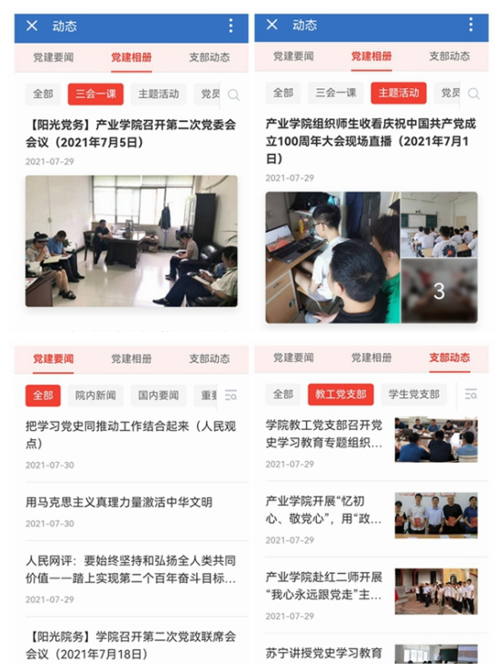 为深入学习贯彻习近平总书记“七一”重要讲话精神,深化党史学习教育,切实为学院师生办好事、办实事,产业学院坚持学习教育与推动工作相融合,学院发展与信息化建设相融合,在师生中积极开展学习和实践活动。