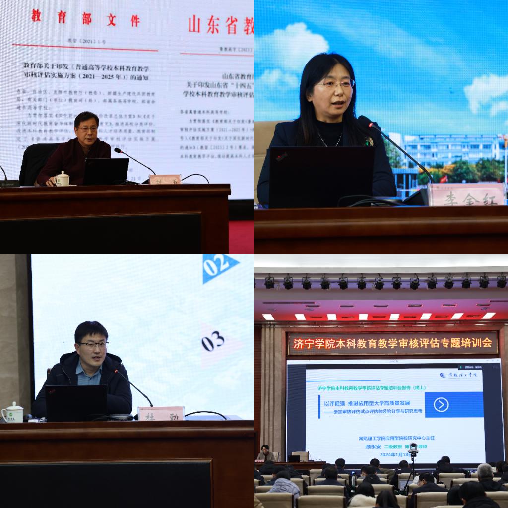 培训会邀请齐鲁工业大学副校长刘玉教授、教务处长李金红教授、机械工程学部副主任杜劲教授、常熟理工学院应用型院校研究中心主任顾永安教授做了报告。刘玉在题为《扎实开展新一轮本科教育教学审核评估工作,全力推动本科教育高质量发展》的报告中系统介绍了齐鲁工业大学推进审核评估的整体情况和措施。李金红在《新一轮本科教育教学审核评估要点理解及实践》的报告中深入解读了评估指标和齐鲁工业大学的实践。杜劲在题为《紧抓新一轮审核评估契机,全力提高学院本科教育教学水平》的报告中分享了二级学院推进审核评估的经验。顾永安在题为《以评促强,推进高校高质量发展-新一轮审核评估试点经验分享与研究思考》的报告中系统解读了新一轮审核评估的背景、特征和建设重点,并提出了深入推进评建工作的建议。