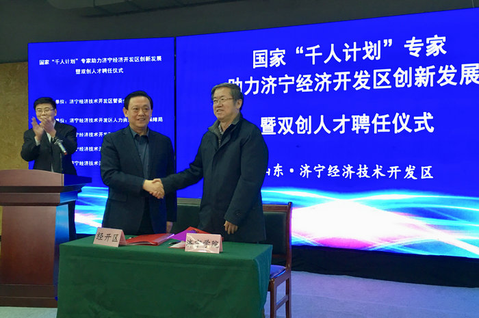 12月13日,我校与济宁经济技术开发区在双创基地圣祥小镇(创研中心)签署了战略合作协议。校党委委员、副院长刘德胜,济宁经济技术开发区管委会主任陈秋生出席签约仪式并代表双方签署协议。双方将充分利用人才资源、科学研究和生产实践方面的优势,在学科建设、网络安全服务、软件研发、高层次人才互聘、人才培养等方面开展合作,进一步强化校地产学研用结合,促进科技成果转化,提升学校的科研水平和研发能力,服务济宁经济技术开发区社会经济发展。