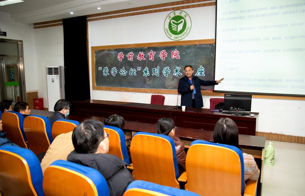 最后,理事代表、重庆幼儿师范高等专科学校学前教育学院院长田兴江为与会人员作了题为《幼小衔接与去小学化的平衡》的学术报告。