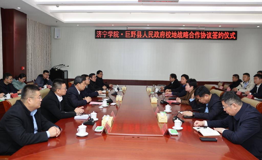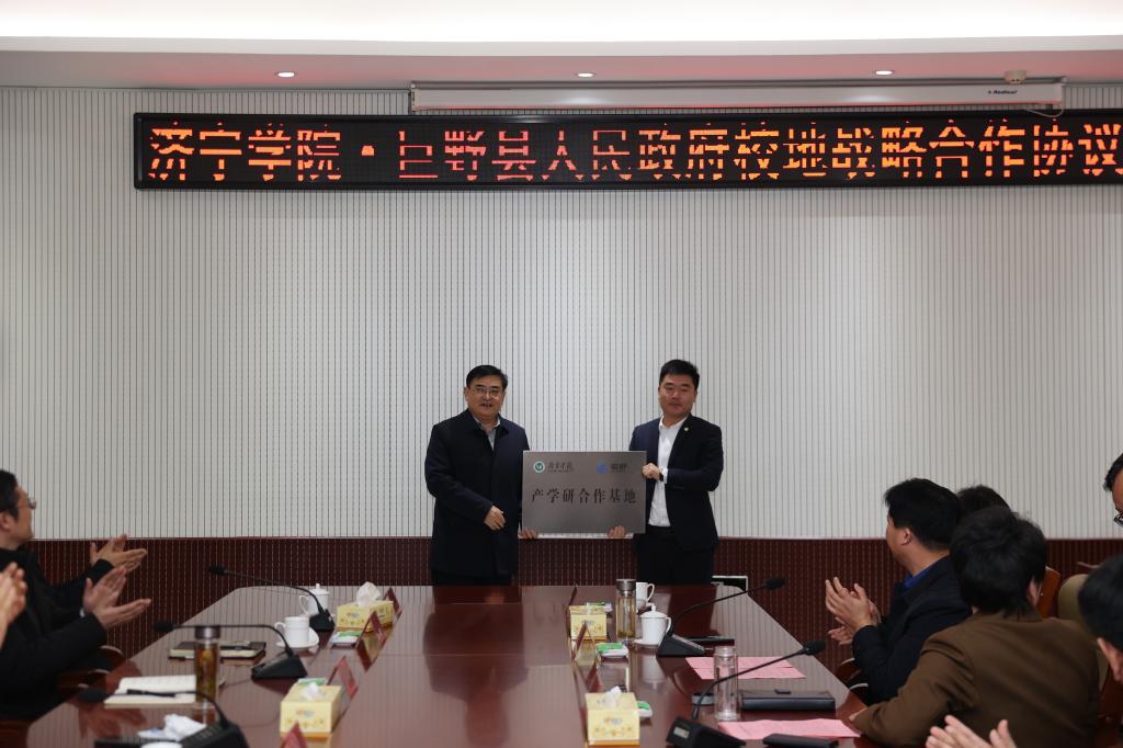 仪式上,我校与巨野县人民政府签署了校地战略合作协议,并为产学研合作基地、研究院和技术中心授牌。