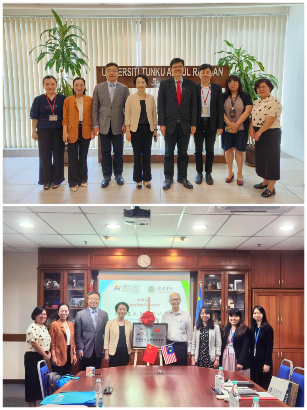 结束在泰国高校的访问后,代表团前往马来西亚进行访问。在吉隆坡大学,与国际学院、商学院相关负责人举行座谈,就商学院的交换生及硕博项目进行了交流与沟通。拉曼大学与我校已开展交换生项目,此次访问重点对接了交换生项目的具体实施细节,同时就儒家经典课程资源共享达成合作意向,双方均表示愿意分享优质课程资源,加强优势学科间的合作。在英迪国际大学,与副校长吴康馼及国际教育学院相关负责人座谈并达成合作意向,现场签署了两校合作谅解备忘录。访问新纪元大学学院期间,两校签署了校际合作备忘录,双方合作共建“东南亚孔孟思想研究院”并举行了揭牌仪式。仪式后新纪元大学学院为我校人文与传播学院院长王永超颁发了博士生导师聘书。下一步两校将积极开展科研人员交流、联合申报国际科研项目。
