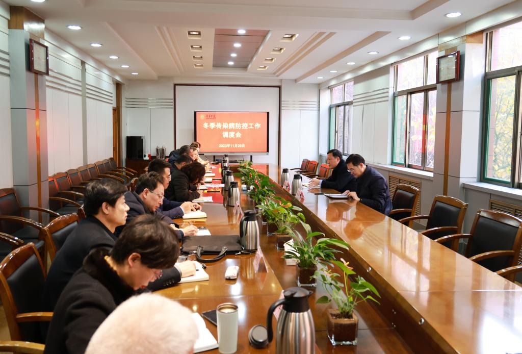 校党委(院长)办公室主任张永刚传达了山东省教育厅《关于加强全省师生传染病防控和健康管理工作的通知》精神。后勤管理与基建处李运宇汇报了我校冬季传染病防控开展情况。