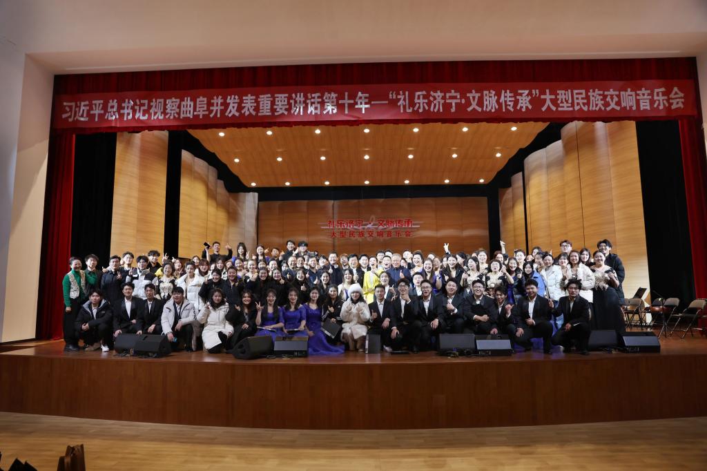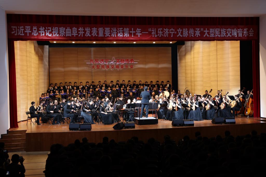 11月25日晚,由山东省政协指导,济宁市政协、曲阜师范大学、曲阜市政协、多宝平台主办的“礼乐济宁·文脉传承”大型民族交响音乐会在曲阜师范大学音乐厅举办。山东省政协副主席、党组副书记林峰海,济宁市政协主席、党组书记霍媛媛,曲阜师范大学党委书记邢光、党委副书记李志红,多宝平台党委委员、副校长赵明,济宁市政协秘书长、党组成员徐兴华和曲阜市政协主席董洪波等领导一同出席并观看了音乐会。