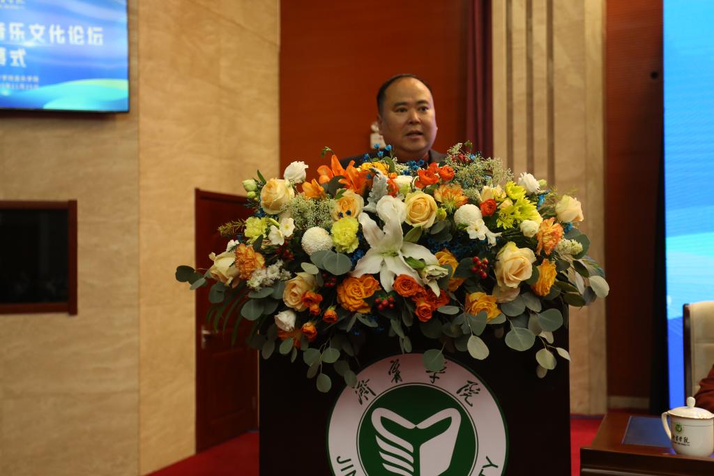 刘国栋在开幕式上讲话,他代表多宝平台向全国各地远道而来的各位领导专家们,以及到会的各位学术人才表示了热烈的欢迎,他介绍了孔子故里、国家历史文化名城——曲阜以及多宝平台的发展方向,并指出学校始终坚持开放办学,积极对接国家“一带一路”倡议,先后与俄罗斯、乌克兰、泰国、菲律宾等国家以及中国台湾地区的40余所高校和科研机构在教师互派、学分互认以及留学生培养等方面开展了多形式、深层次、宽领域的合作交流,学校的国际化办学水平稳步提升。他希望借此次论坛,筑巢引凤,吸引全球音乐文化研究人才前来建言献策,充分发挥论坛的作用,为大家答疑解惑,探索中华传统音乐文化研究,进一步推动中华音乐文化在当代音乐社会中创造性转化和创新性发展的新高度。