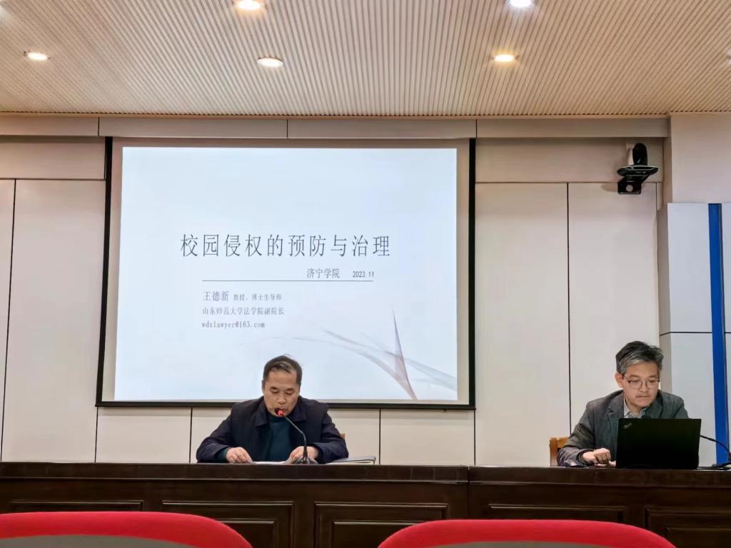 山东师范大学法学院教授、博士生导师、副院长王德新,以《校园侵权的预防与治理》为题,从校园侵权的学理界定、到校园侵权的常见形态,及相关责任主体对于侵权案件预防和处理原则进行系统的讲解和深刻的阐述。