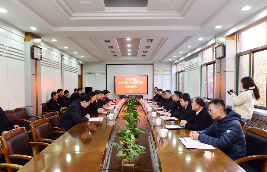 11月24日上午,我校在行政楼A221会议室举行艺体实训中心建设项目签约仪式。我校党委副书记、校长王清明,中建八局一公司鲁南公司总经理魏书圣出席会议并致辞。我校委副书记丰家雷,党委委员、副校长尹春光、赵明,党委委员、宣传部部长刘克非,中建八局一公司鲁南公司副总经理李伟、总工程师孙宇、总经济师全党旗及学校相关部门负责人、艺体实训中心项目建设领导小组全体人员参加活动。仪式由李凡路主持。