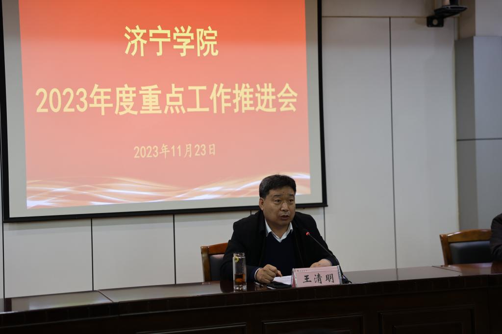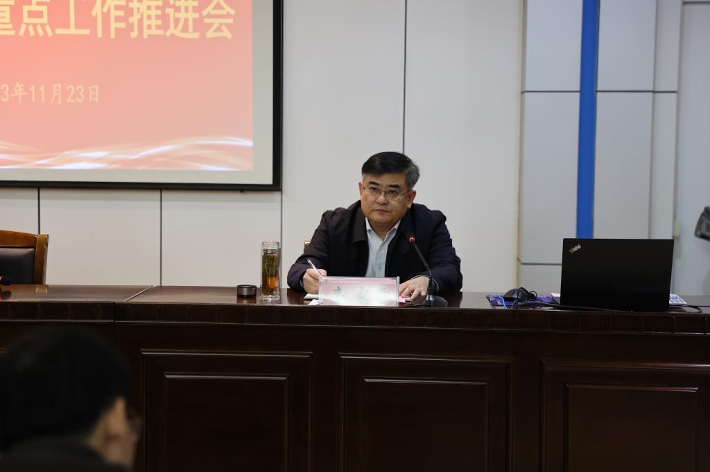 为进一步凝心聚力,加压鼓劲,冲刺年度收官,11月23日下午,学校召开2023年度重点工作推进会暨年度目标任务冲刺大会。全体在校校领导出席会议,校长王清明讲话,校党委副书记丰家雷主持会议。各部门、各单位主要负责人参加会议。