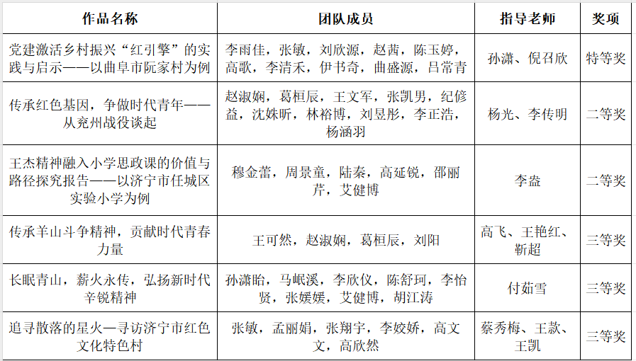 我校第十八届“挑战杯”山东省大学生课外学术科技作品竞赛红色专项赛获奖名单