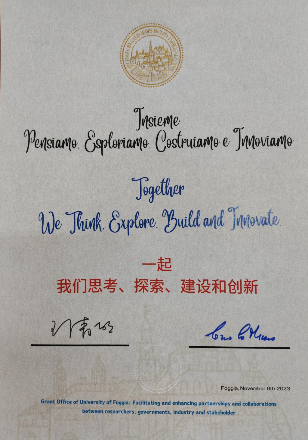 应意大利福贾大学、罗马国家舞蹈学院及德国中德职业应用教育研究院的邀请,我校党委副书记、校长王清明一行5人于2023年11月5日至11月12日赴意大利、德国进行交流访问。生命科学与生物工程学院、产业学院、音乐学院、国际教育学院相关人员随团出访。