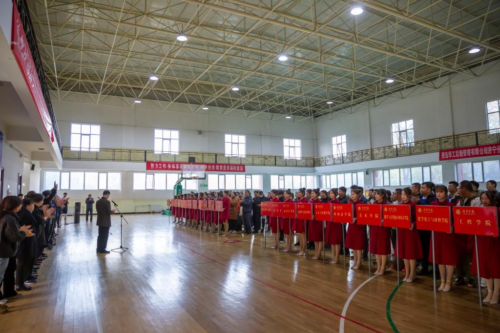 王清明宣布比赛开幕并为首场比赛开球。体育学院教师王霄、教师教育学院教师杨霖分别代表全体裁判员、全体运动员宣誓。赛场上,各队队员团结协作,顽强拼搏,场面激烈而精彩;赛场下学校领导、各单位负责人、教师及广大学生自发组织起拉拉队为场上球员呐喊助威。