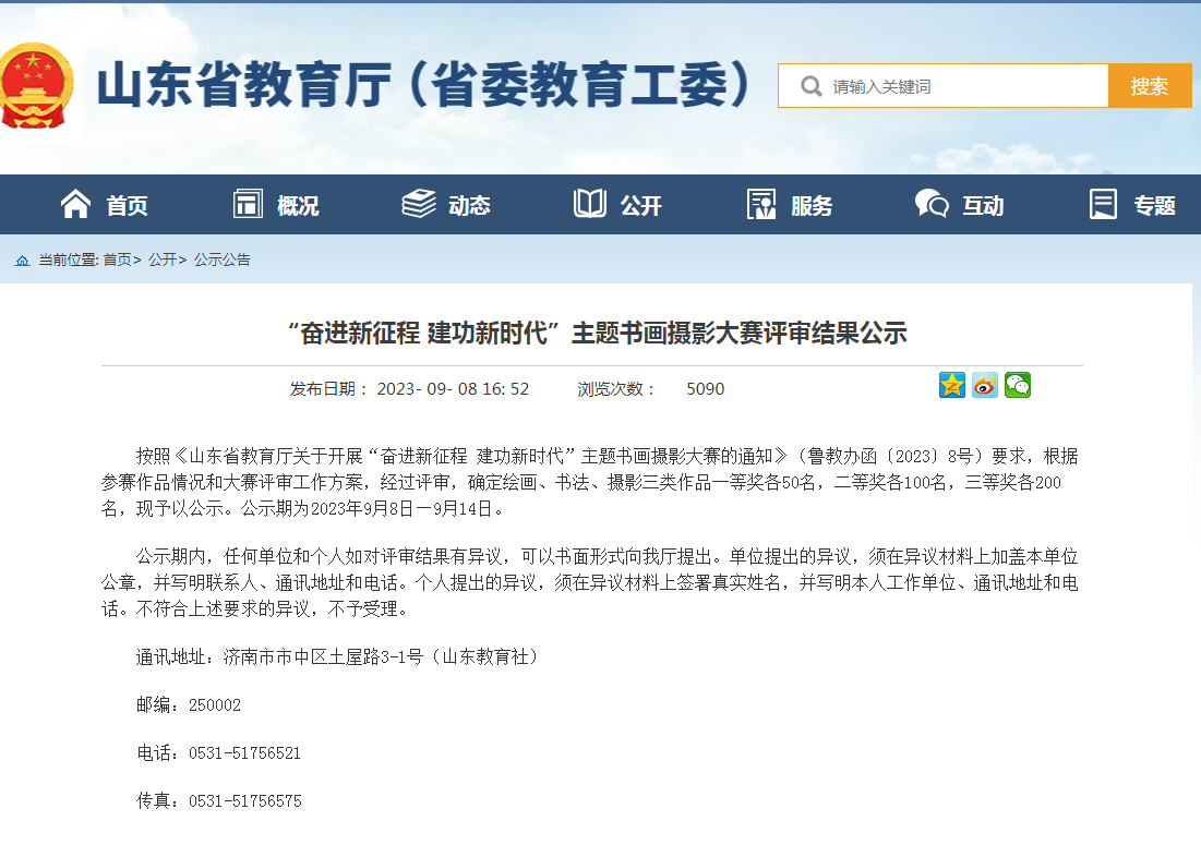 此次大赛由山东省教育厅主办,赛项分为书法、绘画和摄影三类,旨在深入开展学习贯彻习近平新时代中国特色社会主义思想主题教育,生动展现党员干部与教职工“学思想、强党性、重实践、建新功”的新风貌和新作为。