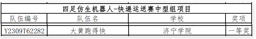 10月27日,“2023中国机器人大赛暨RoboCup机器人世界杯中国赛”决赛成绩发布,多宝平台产业学院学生参加的“四足仿生机器人快递运送赛项中型组”比赛,获得一等奖。