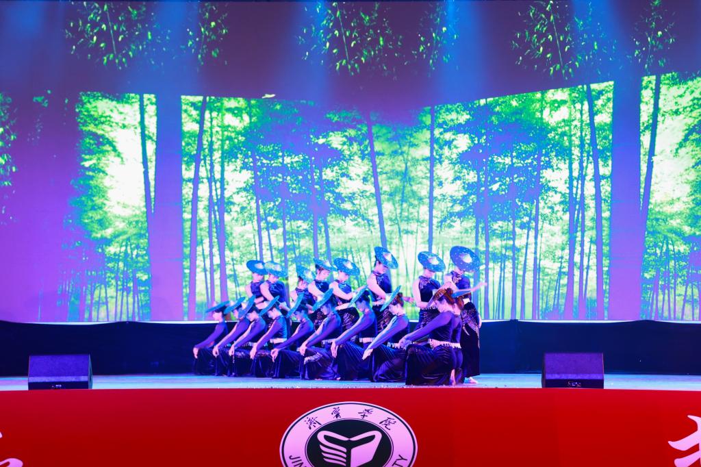 晚会在精彩绝伦的舞蹈《多彩中华》中拉开帷幕,华夏大地的锦绣山河映入眼帘,五十六个民族铸就的多元一体、繁荣兴旺的中华民族大家庭让人深受震撼。“江南好,风景旧曾谙”,古筝合奏《茉莉花开》、琵琶独奏《忆江南》让大家置身于烟雨朦胧的诗意江南。走过时光的隧道,穿越千年的旅途,《盛世霓裳》为大家带来了一场别开生面的视觉服装秀盛宴。歌曲《父亲》以柔和的旋律和动人的歌词深深触动了人们的内心,让人真切感受到父爱的力量和伟大。街舞《I’m the best我最红》、歌曲串烧《我们的青春》,青春洋溢、朝气蓬勃、活力四射。《祖国不会忘记》《满江红》用不同的表演形式,彰显了不同时代的爱国主义精神,表达了深切的民族之爱和浓厚的爱国情怀。歌曲《丰收的日子》、舞蹈《醉春风》《陶醉了》《草原情深》,曼妙与热烈的碰撞、温婉与激情的交融,展示了中华优秀传统文化多姿多彩的魅力。辅导员代表带来的歌曲《奔跑》《爱》《我们都是追梦人》引发同学阵阵欢呼和掌声,掀起晚会高潮。尽管阴雨连绵,但同学们依然热情高涨。随后,学校师生代表合唱《再一次出发》,共同唱响对未来的希冀与期许,晚会在激昂的合唱声中落下帷幕。