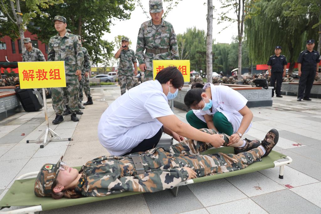 上午10点,防空警报拉响,参加演练的新生迅速、有序、安全地根据逃生路线撤离,紧急疏散至防空洞、空旷地,寻找掩体躲避。疏散引导组、安全组、救护组、通信联络组、抢险抢修专业队、医疗专业队、心理咨询专业队等迅速进入岗位,对伤员进行救护、心理疏导,安全组、管道抢修队员紧急抢险、抢修管道,确保供水供电。10点25分,警报解除,参演同学有序集合至广场,防空防灾演练顺利结束。
