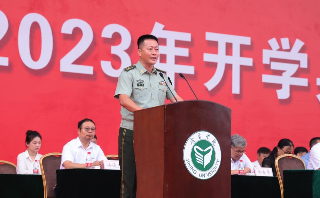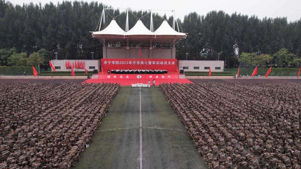 9月11日上午,我校在西运动场隆重举行了2023年开学典礼暨军训动员大会。校党委书记杨天梅出席会议并为军训团授旗,党委副书记、校长王清明出席会议并讲话。学校领导班子成员丰家雷、李凡路、尹春光、赵明、孔繁润、刘国栋、张永强、刘克非,武警济宁支队领导张旭出席会议。各部门、各二级学院主要负责同志,教师代表、在校生代表及全体2023级新生参加大会。大会由党委委员、副校长赵明主持。